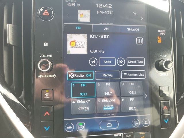 - Radio: Subaru STARLINK 11.6" Multimedia Plus System -inc: AM/FM stereo HD Radio, multi-touch gesture high resolution display screen, voice activated controls, Bluetooth® audio streaming and hands-free phone connectivity w/SMS text messaging connectivity (refer to subaru.com for cell phone compatibility), Near Field Communication (NFC), iPod control capability, SiriusXM All Access radio (4 months free trial/subscription required after), SiriusXM Travel Link (4 months free trial/subscription required after), smartphone integration for Android Auto and Apple CarPlay w/full screen view and wireless connection and STARLINK cloud applications, USB and Over The Air (OTA) audio system update, steering wheel controls for audio and Bluetooth®, 6 speakers, 3.5mm illuminated auxiliary input jack, and illuminated USB A and C input/charge ports